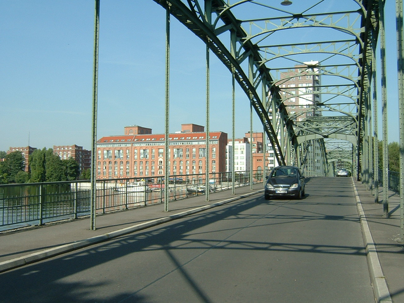Kurz vor unserem Zwischenhalt in Hakenfelde (ein Ortsteil von Spandau) querten wir die Insel Eiswerder. Die Havelinsel Eiswerder hat eine interessante (Industie-) Geschichte, heute entwickelt sie sich mehr und mehr zu einem Kunst- und Medienstandort (weiterlesen…). Hier begann die eigentliche Tour: wir fuhren von Hakenfelde am Rande der Spandauer Altstadt entlang durch den Münsinger Park und erreichten die Wilhelmsstadt.